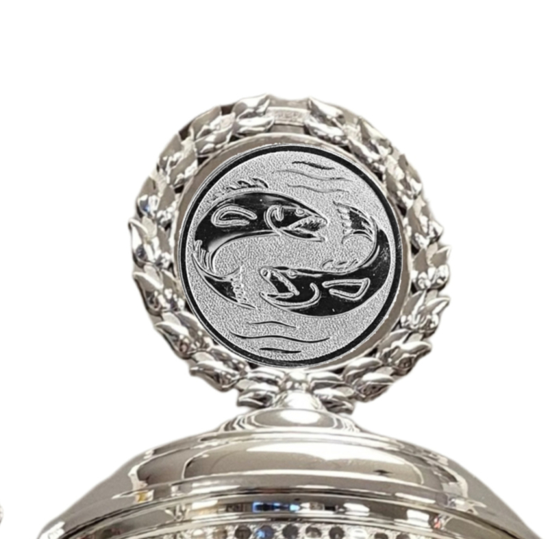 Bij deze Nummer 3 Brons/Zilver kunt u zelf bepalen welke (vis)afbeelding (diameter 25 mm) er op de trofee mag schitteren. U heeft hierbij de keuze uit: