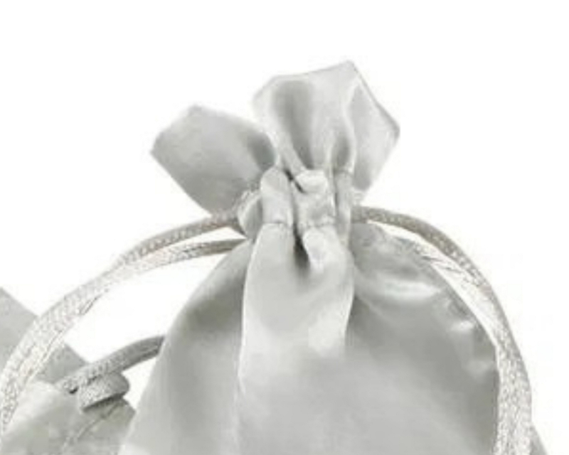Deze zilverkleurige satijnen zakjes hebben een prachtige, lichtglanzende oppervlak en een gladde textuur, die de hoge kwaliteit benadrukt. Dankzij het flexibele ontwerp en de zachte textielstructuur is dit sieradenzakje ideaal voor het bijna gewichtloos verpakken en cadeaugeven van bijvoorbeeld ringen, hangers, edelstenen en tal van andere kleine, luxe geschenken. De soepele stof en de zilveren glans zorgen voor een extra exclusieve uitstraling, die de waarde van het geschenk zeker zal versterken!.