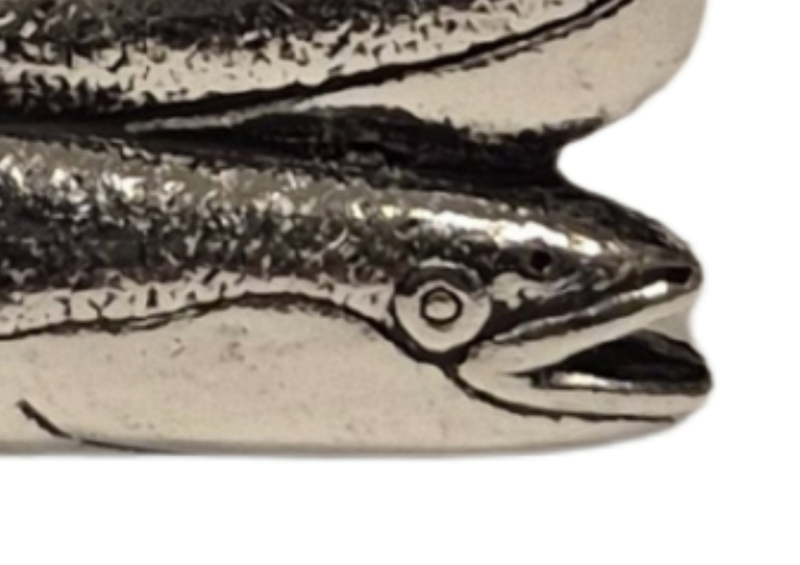 Deze Visspeld Paling is op ambachtelijke wijze met de hand vervaardigd van zuiver tin en daarna op zorgvuldige wijze gepatineerd, waardoor een extra mooi contrast verkregen wordt. Dit leuke visspeldje vormt een superleuk cadeau voor elke palingvisser en palingliefhebber! Deze natuurgetrouwe Visspeld Paling is bijvoorbeeld een blijvend aandenken aan de vangst van een grote reuzenpaling, maar dit speldje vormt ook een ideaal geschenk voor een jubileum, verjaardag, sinterklaas, kerst of een andere feestelijke gelegenheid.
