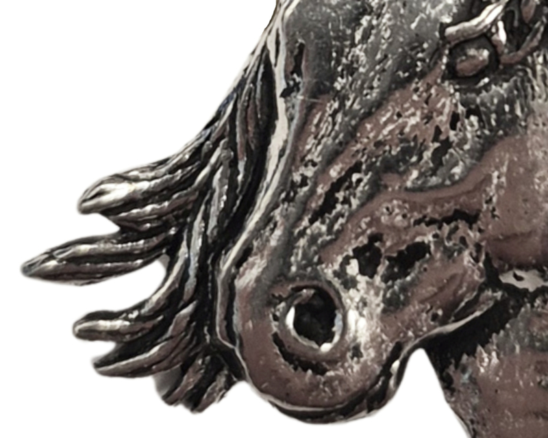 Artikelnummer: 9789796647347 OverzichtGedetailleerde speld van een paardenhoofd met manen