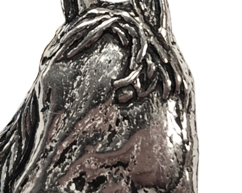 Deze speld van een paardenhoofd is op ambachtelijke wijze met de hand vervaardigd van zuiver tin en daarna op zorgvuldige wijze gepatineerd, waardoor een extra mooi contrast verkregen wordt. Deze leuke speld vormt een superleuk cadeau voor elke paardenliefhebber! Dit natuurgetrouwe paardenhoofd is bijvoorbeeld een blijvend aandenken aan je lievelingspaard, maar deze speld vormt ook een ideaal geschenk voor een jubileum, verjaardag, sinterklaas, kerst of een andere feestelijke gelegenheid.