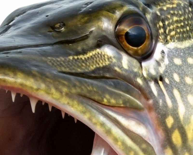 Vis Sticker Snoek 15 cm Links met open bek met tanden