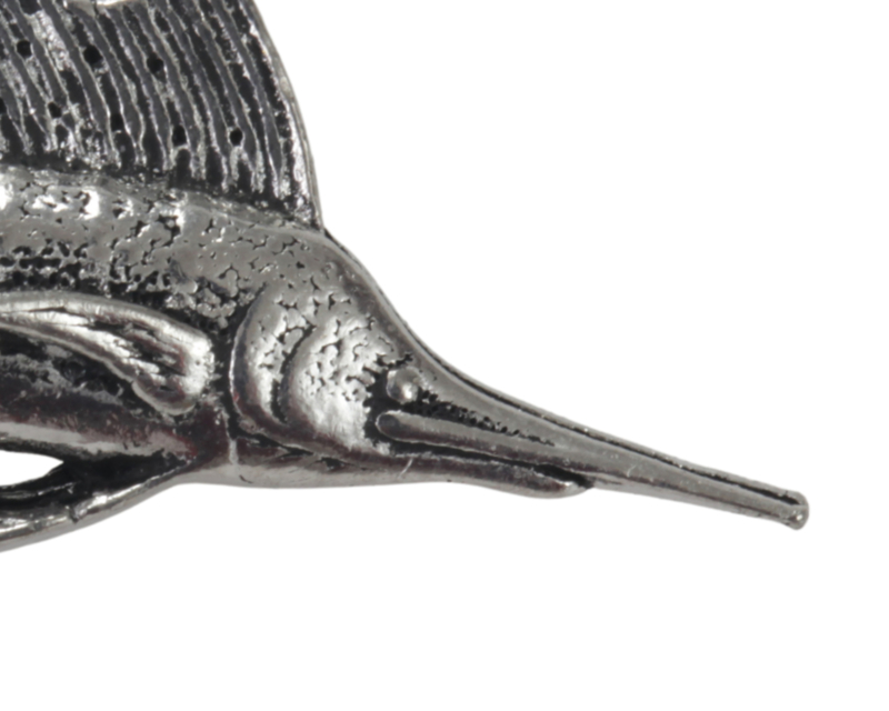 Deze visspeld zeilvis is op ambachtelijke wijze met de hand vervaardigd van zuiver tin en daarna op zorgvuldige wijze gepatineerd, waardoor een extra mooi contrast verkregen wordt. Dit leuke visspeldje vormt een superleuk cadeau voor elke zeevisser! Deze natuurgetrouwe visspeld zeilvis is bijvoorbeeld een blijvend aandenken aan de vangst van een mega grote zeilvis, maar dit speldje vormt ook een ideaal geschenk voor een jubileum, verjaardag, sinterklaas, kerst of een andere feestelijke gelegenheid.