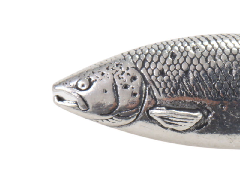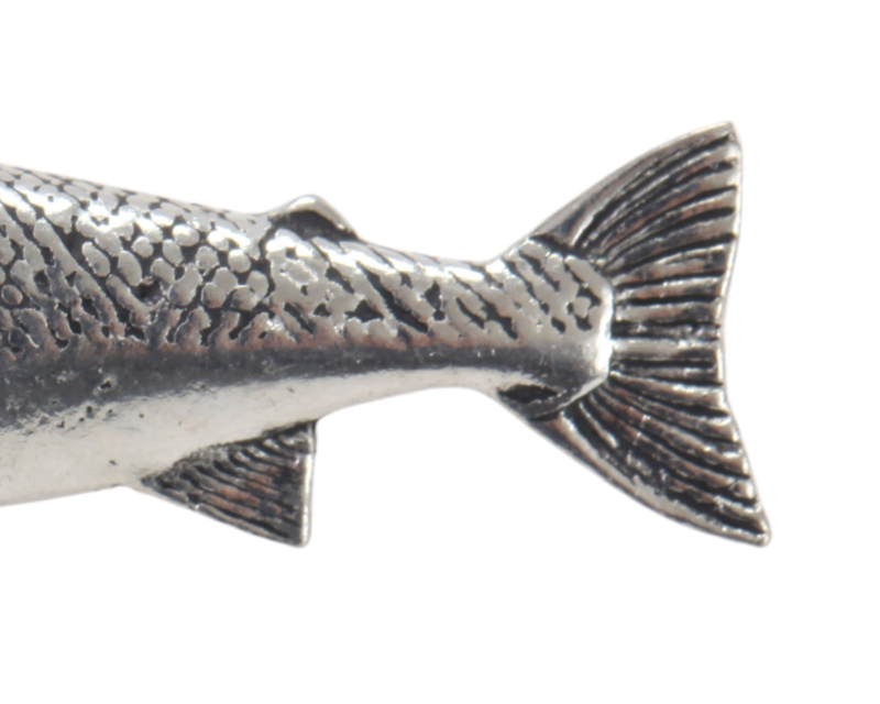 Deze visspeld zalm is op ambachtelijke wijze met de hand vervaardigd van zuiver tin en daarna op zorgvuldige wijze gepatineerd, waardoor een extra mooi contrast verkregen wordt. Dit leuke visspeldje vormt een superleuk cadeau voor elke zalmliefhebber! Deze natuurgetrouwe visspeld zalm is bijvoorbeeld een blijvend aandenken aan de vangst van een grote zalm, maar dit speldje vormt ook een ideaal geschenk voor een jubileum, verjaardag, sinterklaas, kerst of een andere feestelijke gelegenheid.